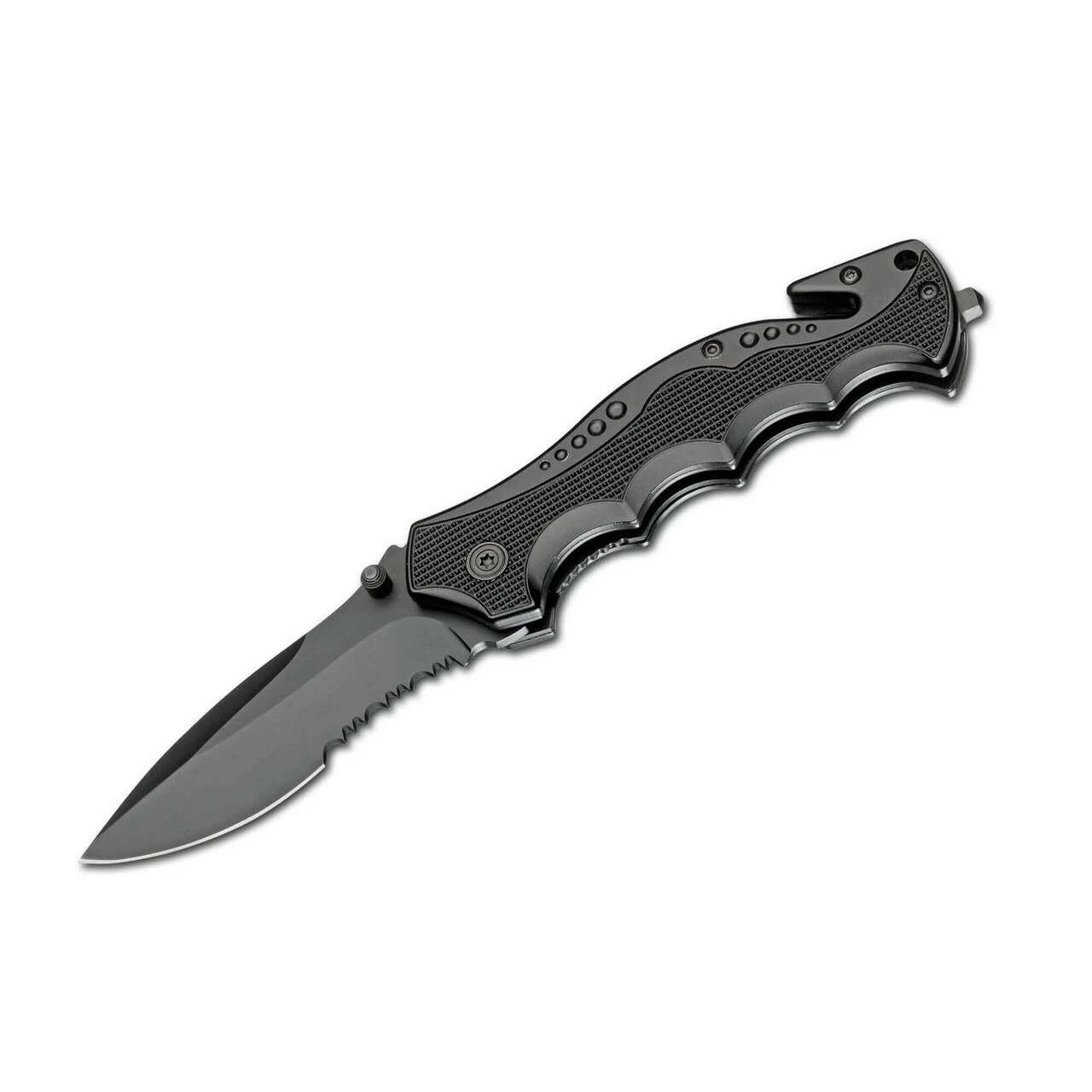 This powerful rescue knife features all the essentials: seatbelt cutter, glass-breaker, serrated blade, and pocket clip for easy carry. The blade is black coated 440 stainless steel, and locks securely with the liner lock mechanism. Another special feature of this piece is that it is ideal for customization – the “Magnum” logo has been moved to the back side of the blade, leaving the front side open for engraving.