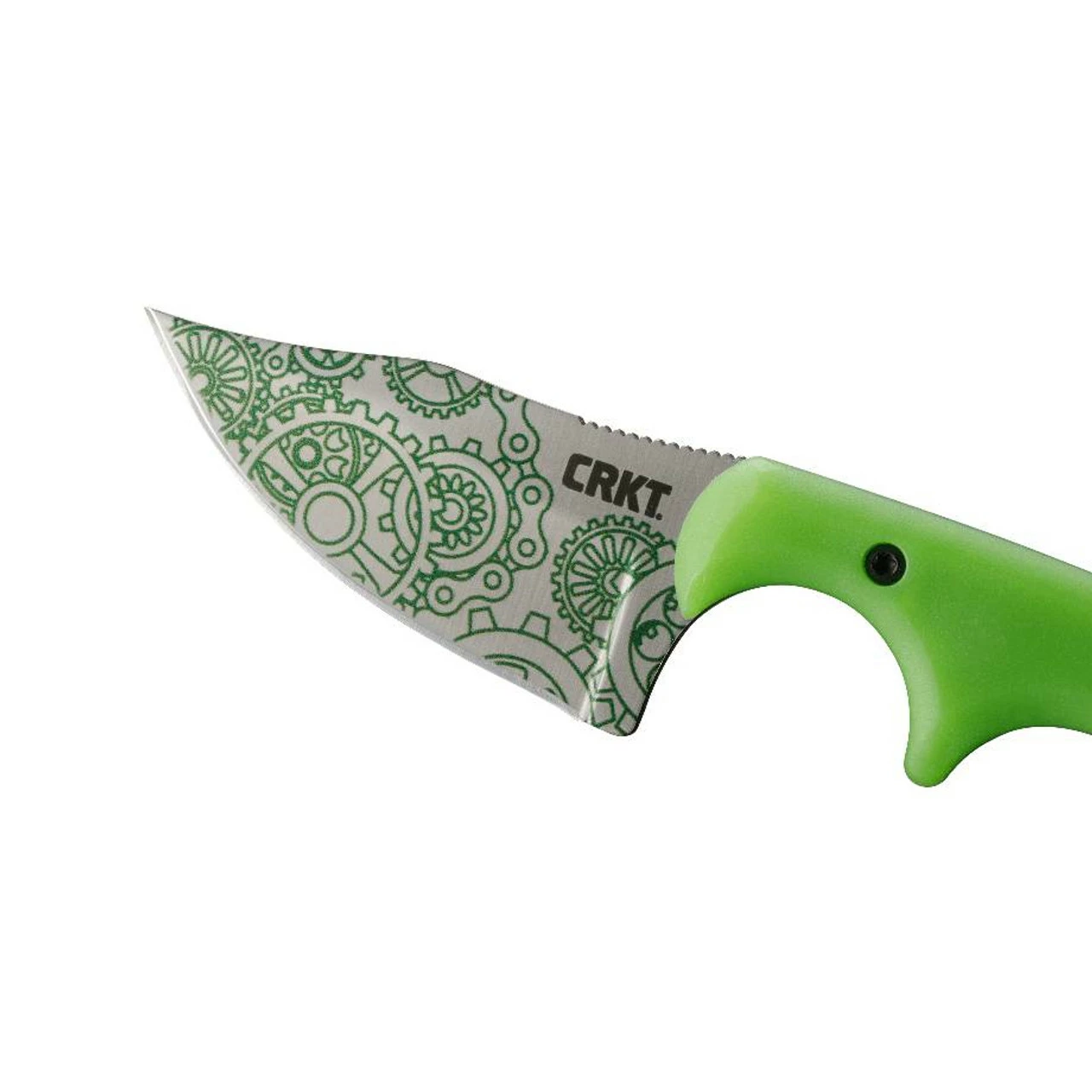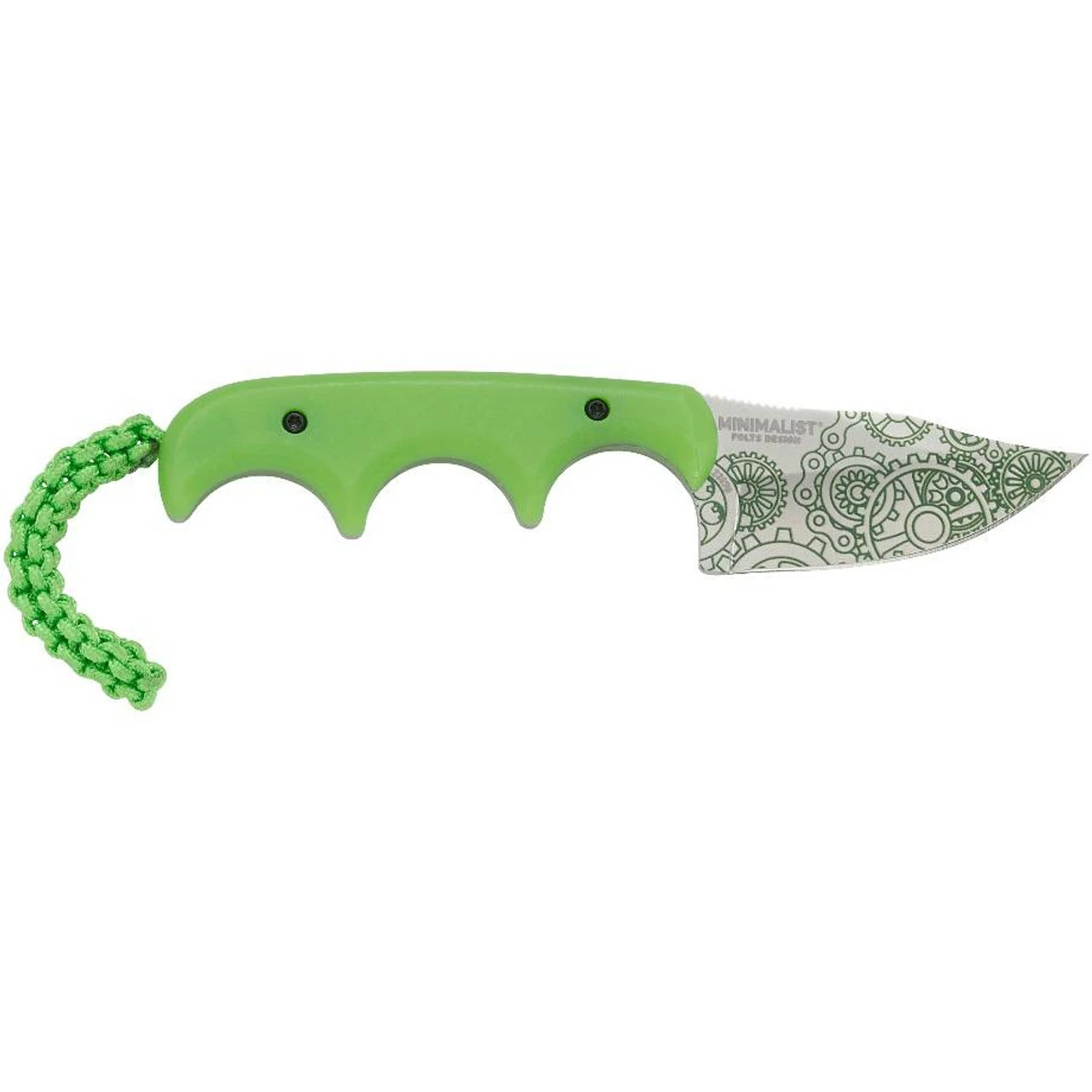 This compact fixed blade neck knife with tough handles is newly decked in 3D printed gears that always sparks a campfire conversation. In the woods or the garage, it feels equally at home. The 8Cr13MoV steel blade has good edge retention and resharpens easily and features a green printed gear pattern on top of a nice satin finish. The glass reinforced nylon sheath allows for easy storage and can be set up for around-the-neck or belt carry.