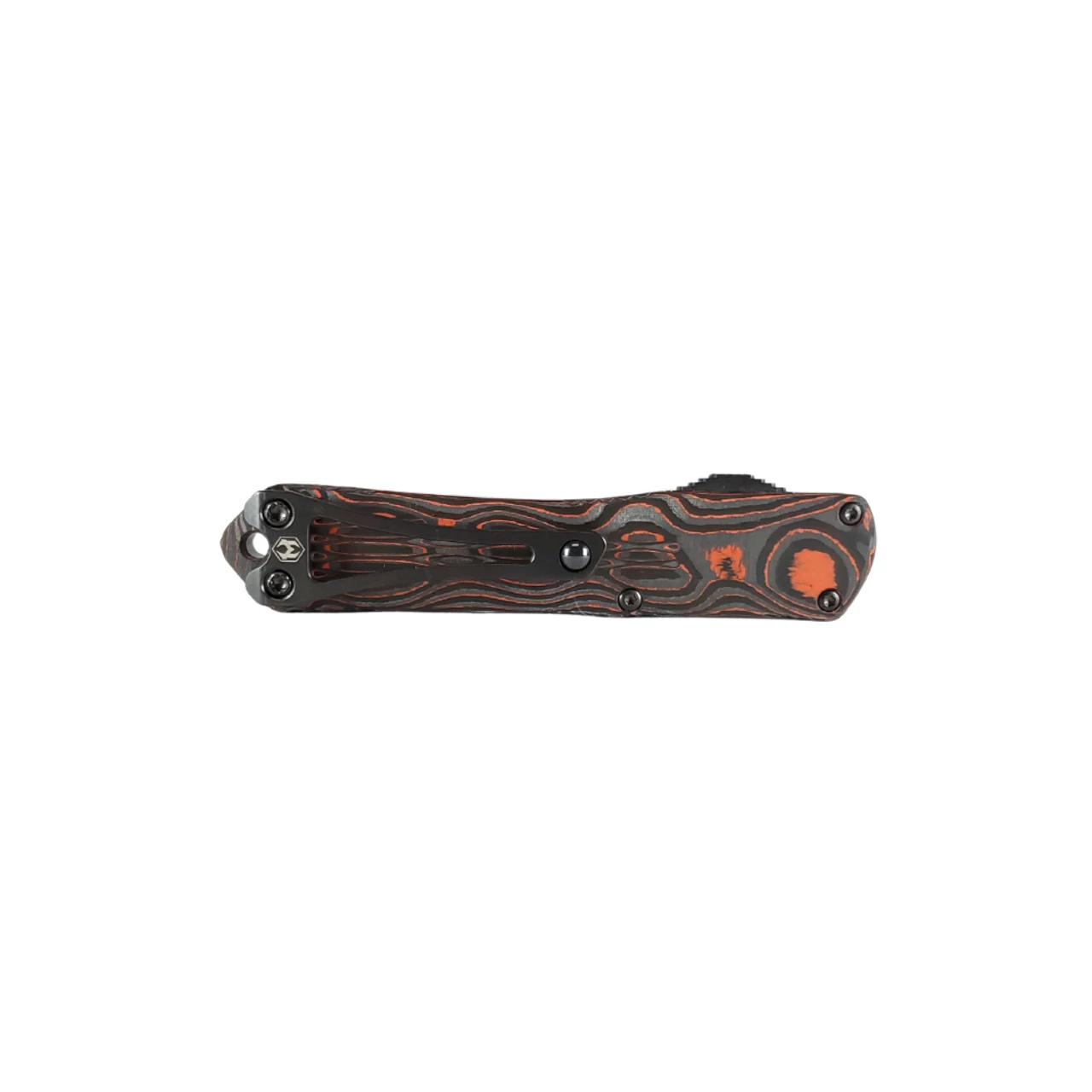 HERETIC KNIVES is a company known for producing some of the best knives in the market today and it is their dedication to precision, attention to detail, and motivation to surpass expectations that has separated them from all others. The HERETIC KNIVES Manticore-S is the smallest offering in the Manticore line up. With the same features as the Manticore-X this knife is sure to be something in which you can trust as a backup to your EDC knife. This Manticore-S is equipped with an Elmax steel tanto blade in a Black DLC coated finish. The handle features a Black anodized aluminum chassis with an Orange Camo Carbon Fiber backcover plus an integrated lanyard hole and a hardened steel glass breaker. This Manticore-S also features a black G10 switch and black coated hardware and tip-down deep-carry pocket clip.