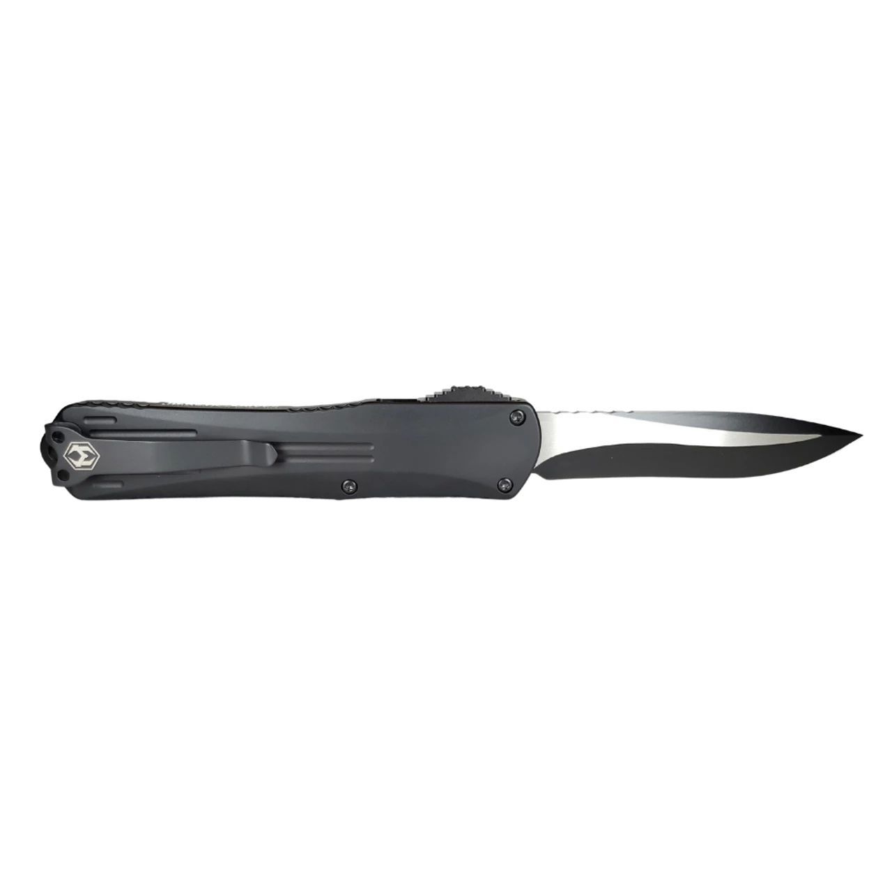 HERETIC KNIVES is a company known for producing some of the best knives in the market today and it is their dedication to precision, attention to detail, and motivation to surpass expectations that has separated them from all others. The HERETIC KNIVES Manticore-X is the largest offering in the Manticore line up. This full-size OTF has a smooth and quick action that allows for easy one-handed deployment. This Manticore-X is equipped with an Elmax steel drop point recurve blade in a Two Tone Black coated finish. The handle features a Black anodized aluminum chassis with an integrated lanyard hole and a hardened steel glass breaker. This Manticore-X also features a black G10 switch and black coated steel hardware and tip-down deep-carry pocket clip.