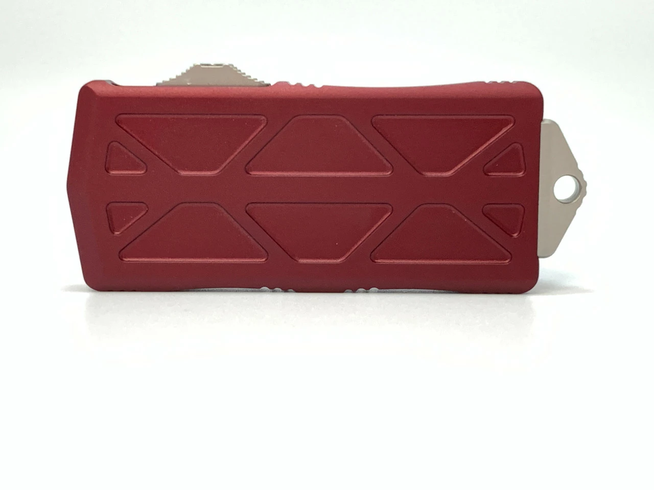All-new in Microtech’s lineup, the Exocet marries utility and daily practicality together in one unique package. Innovative and the first of its kind, this automatic OTF conceals a California legal blade and doubles as a money clip, making it perfect for daily carry. This Exocet is equipped with a double-edge dagger blade with a stonewashed finish and Merlot Red aluminum handles. The hardware and pocket/money clip also feature a stonewashed finish.