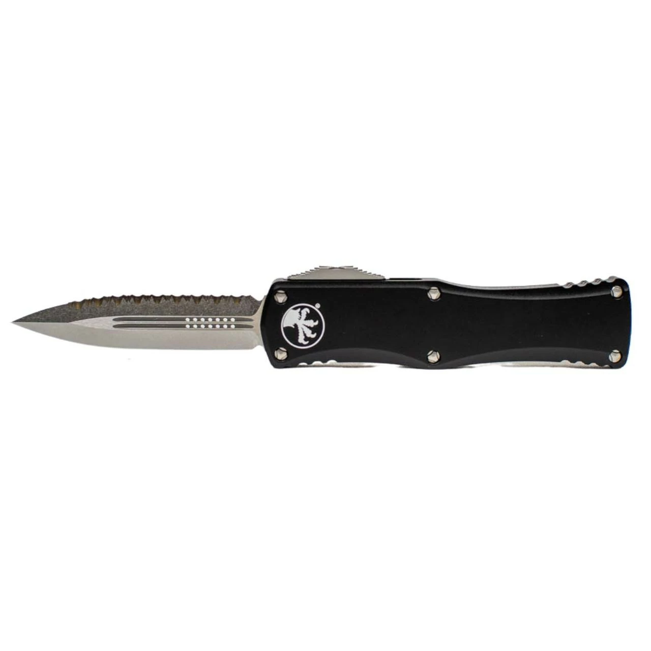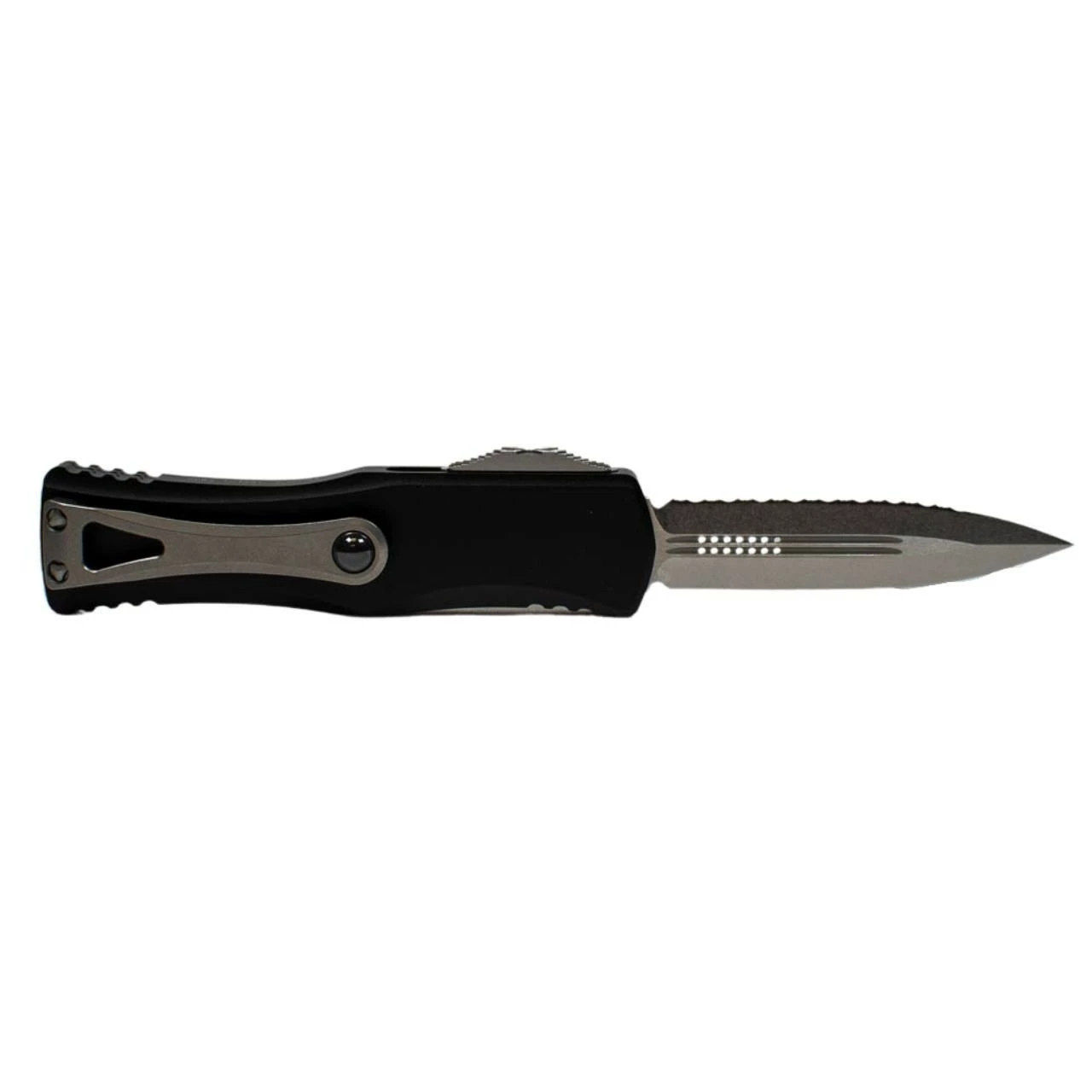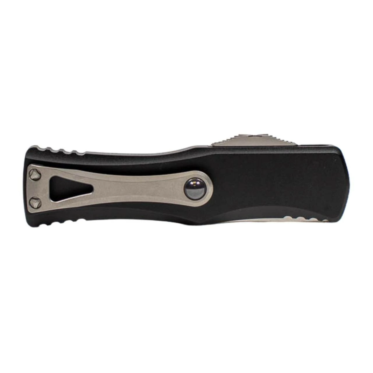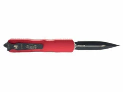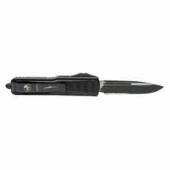 As the flagship model of the Microtech OTF lineup, the Ultratech sets the standard for Out-The-Front technology. Proprietary design allows the firing spring to be at rest in both the open and closed positions, drastically reducing wear on the internal firing mechanisms. The contoured chassis handle provides a lighter and more ergonomic feel and comes in a smooth, flat finish. This Ultratech is equipped with a drop point blade with Microtech’s Apocalyptic finish and Gray aluminum handles. Hardware and pocket clip also feature the Apocalyptic finish.