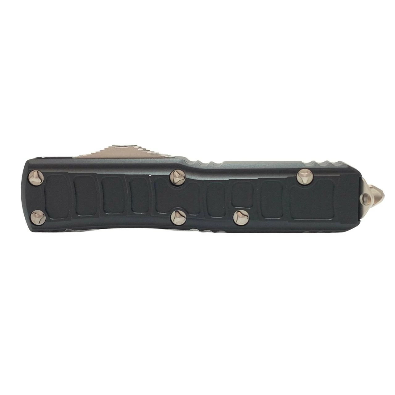 At 85% the size of the Ultratech, the UTX-85 was designed to fit perfectly in your hand, making it a great choice for your everyday carry. The firing mechanism is easier to operate than the full-size Ultratech, making it ideal for smaller or sensitive hands. The UTX-85 still features a fully functional glass breaker along with all the features of the full-size Ultratech. This UTX-85 II is equipped with a drop point blade with a stonewash finish and Black aluminum handles that feature a Stepside milling pattern. Hardware and pocket clip also feature a stonewash finish.