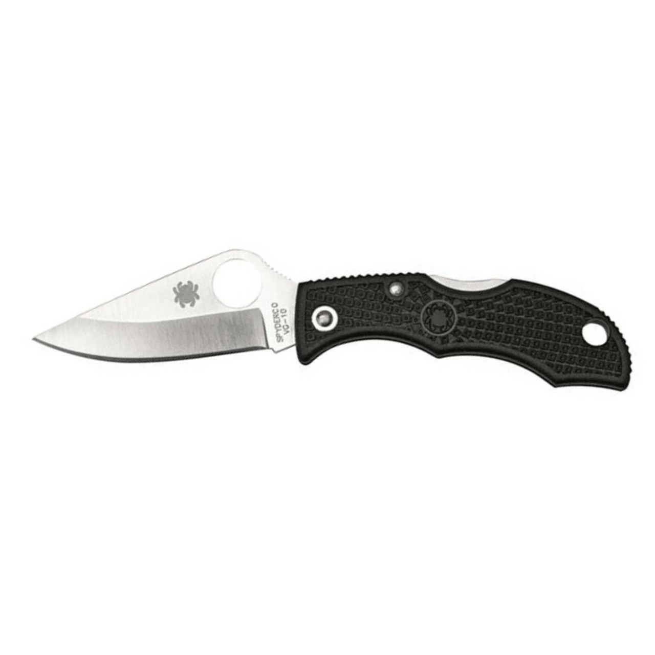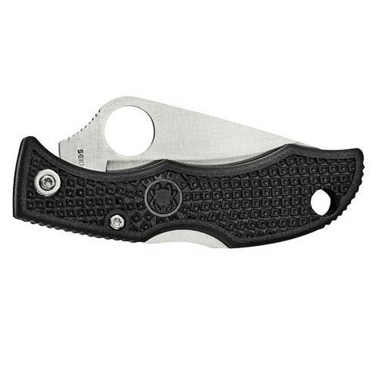 Made of VG-10 stainless steel, the hollow ground blade comes in a SpyderEdge or PlainEdge configuration. This modified clip-point blade style is matched up with a black, lightweight handle of fiberglass-reinforced nylon resin making the entire knife weigh only 0.6 of an ounce (16.4 grams). The LBK3 doesn’t have a clip but rather a lanyard hole for attachment to a keychain or lanyard.
