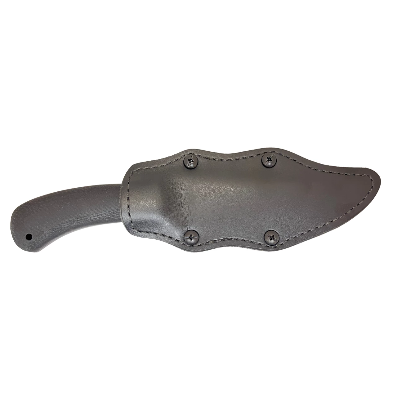 WINKLER KNIVES’ most popular design. Perfectly balanced, the size and shape lend well to most all applications. It is an ideal tool for outdoor enthusiasts and tactical operators, as well. This Belt Knife is equipped with a 80CrV2 steel trailing point blade in WINKLER’s No-Glare Caswell Finish. The full tapered tang handle features Black Micarta scales that have been contoured to provide a superior grip while in use. This Belt Knife also features a black leather sheath that allows for multiple carry options.